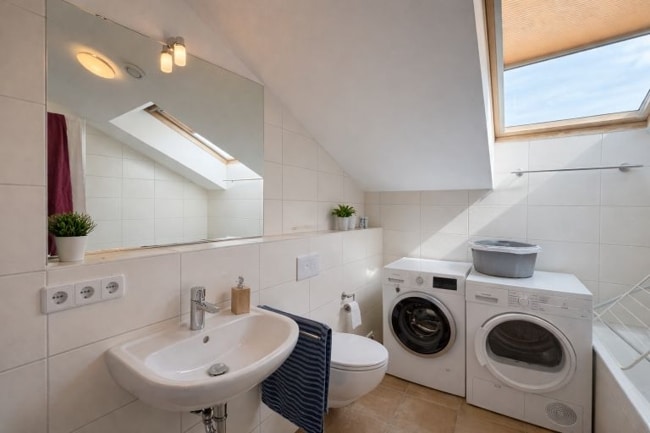 Ein besonderes Highlight ist das Dachstudio: Es verfügt über eine eigene Küche, ein helles Badezimmer und einen großzügigen Wohn- und Schlafbereich mit großen Dachfenstern, die für eine angenehme Lichtatmosphäre sorgen. Ein eigener Balkon macht diesen Bereich zu einem charmanten Rückzugsort.