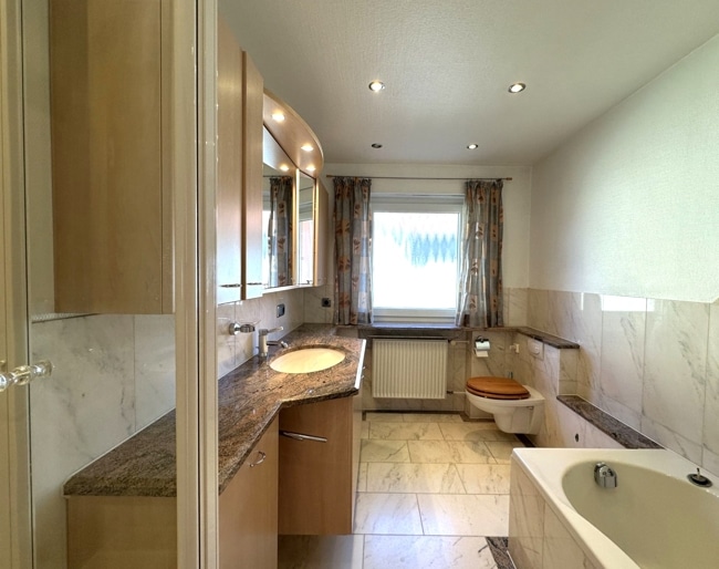Moderne Bäder: EG-Bad mit Dusche, Wanne und Bidet, zusätzliches