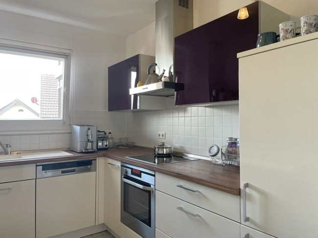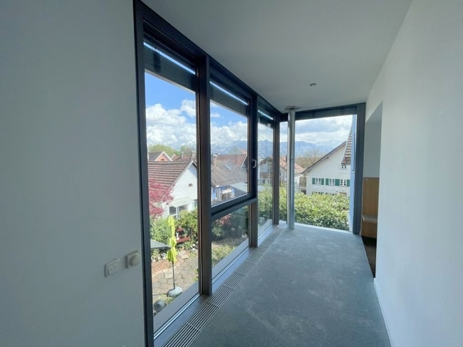 Die Wohnung ist hochwertig ausgestattet mit massivem Eichenparkett, großen Fenstern, einer hochwertigen EBK und vielen schönen Details. Das Badezimmer ist barrierefrei mit Waschmaschinen-Anschluss. Der Süd-Balkon mit Blick über die Dächer von Murnau ist ein weiteres Highlight.