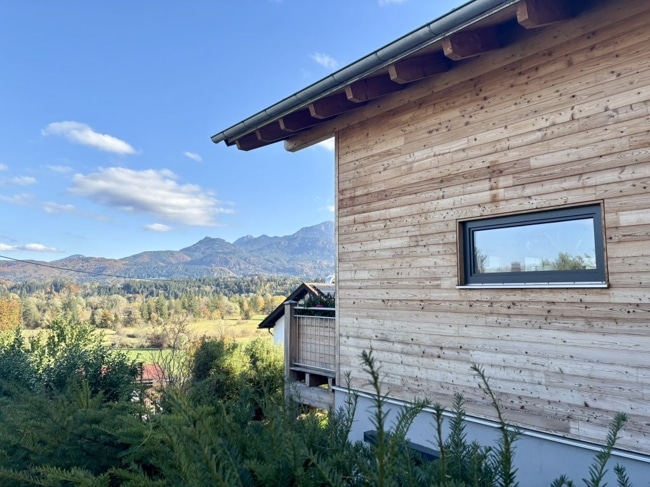 In traumhafter Lage von Murnau-Hechendorf, mit einem einmaligen Panoramablick in die Berge und über das Moos, liegt dieses erst im Jahre 2020 neu erbaute KfW70-Holzhaus.