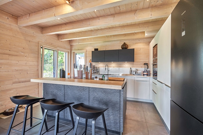 Das Haus wurde von der Firma "Sonnleitner Holzhausbau" geplant und in Holzständerbauweise errichtet.