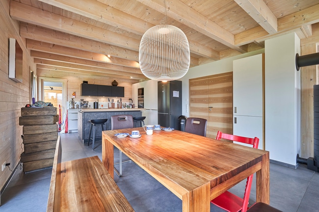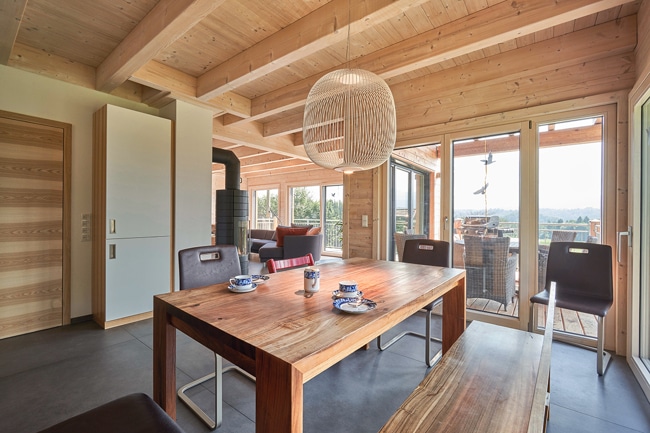 Entstanden ist ein Traumhaus, welches keine Wünsche offen lässt: ein durch und durch gesundes Einfamilienhaus in traditioneller und hochwertiger Holzbauweise mit hellen Räumen, Behaglichkeit durch Natürlichkeit und ein wohngesundes Raumklima.