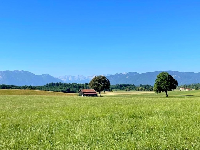 Sie haben einen traumhaften Blick über die Wiesen bis ins Wettersteingebirge - absolute Ruhe und traumhafte Lage.
