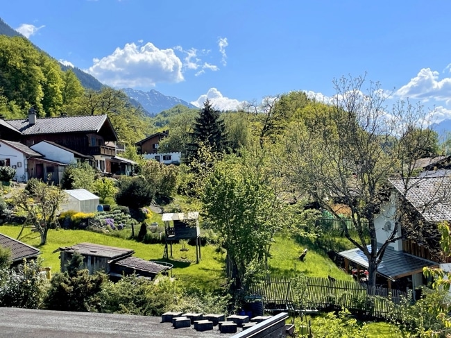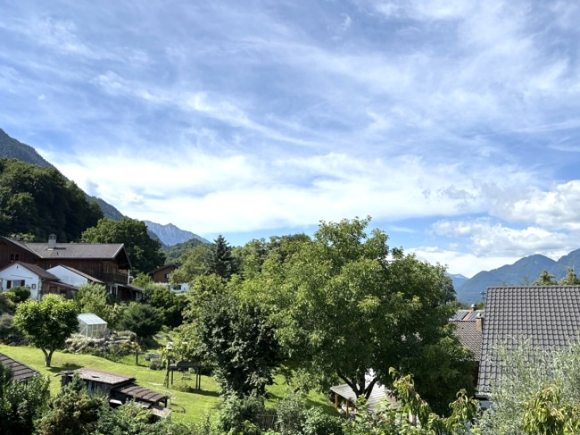 Das Grundstück ist nach Süden und Süd-Westen ausgerichtet und bietet einen herrlichen Blick ins Grüne - im Winter sogar bis zur Zugspitze.