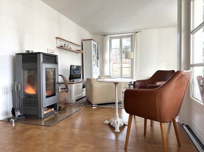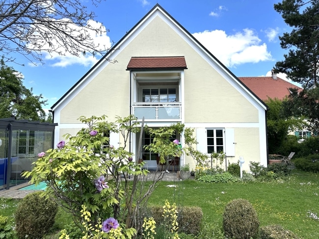 Der nach Süden ausgerichtete Garten lädt zu entspannten Stunden im Freien ein, während der angrenzende Glaspavillon das ganze Jahr über eine stilvolle Rückzugsmöglichkeit für die ganze Familie darstellt.